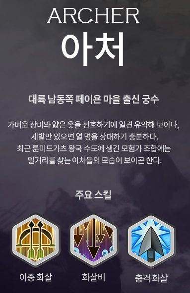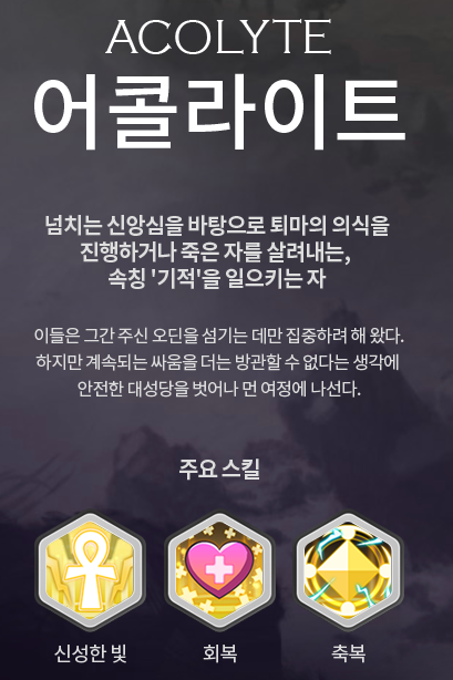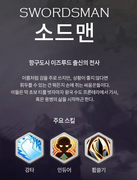 각각 소드맨, 아처, 매지션, 어콜라이트입니다.