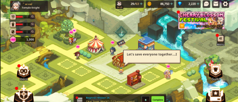 월드1을 완료하면 이제 타이쿤 처럼 마을 운영도 가능하다.