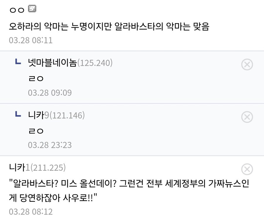 오하라가 사라진건 잔혹하지만 알라바스타는 아무 상관없는 니코로빈