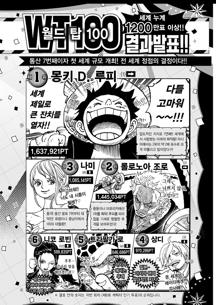 1위부터 6위까지 거의다 밀짚모자 해적단이 차지하고 있음