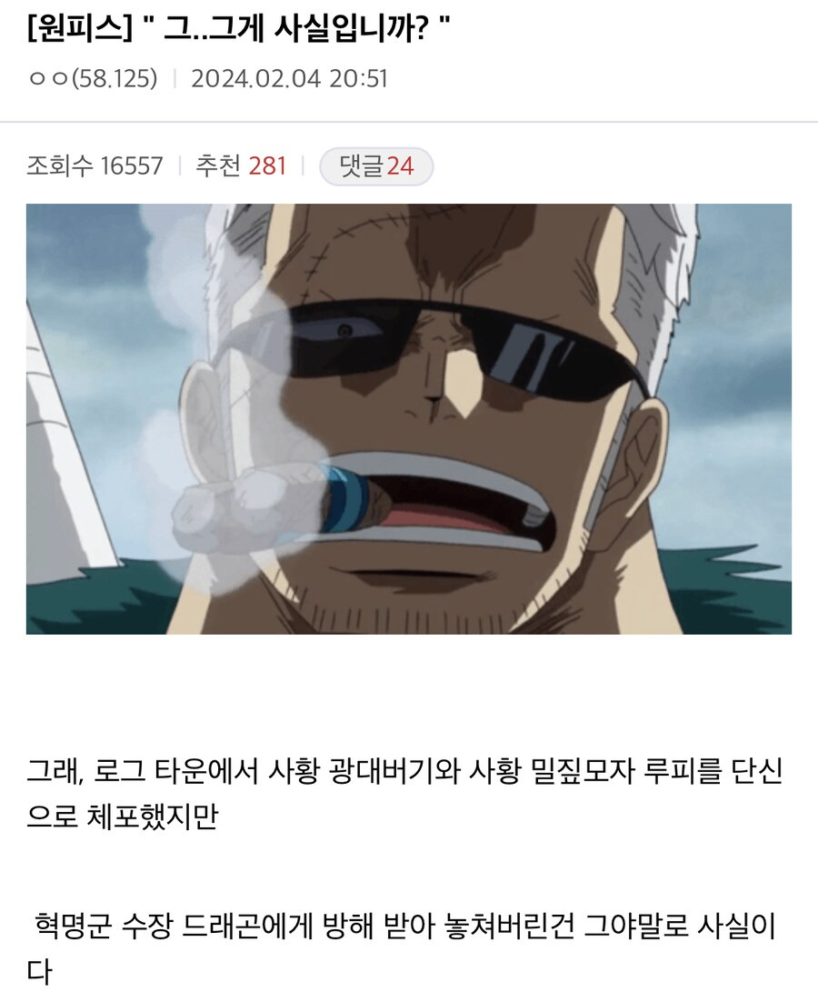 (원피스) 단신으로 사황 2명과 혁명군 총사령관을 상대한 사나이 스모커