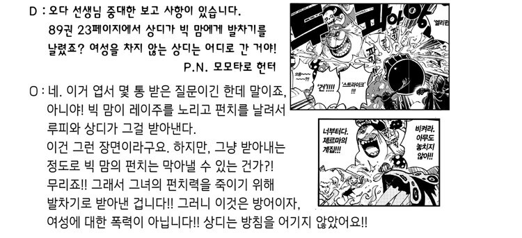 상디가 여자인 빅맘을 공격한 것에 대해 오다의 공식 답변